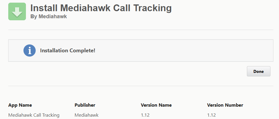 This will then take you to the Installed Packages screen below where you will see the Mediahawk Call Tracking package has been installed.