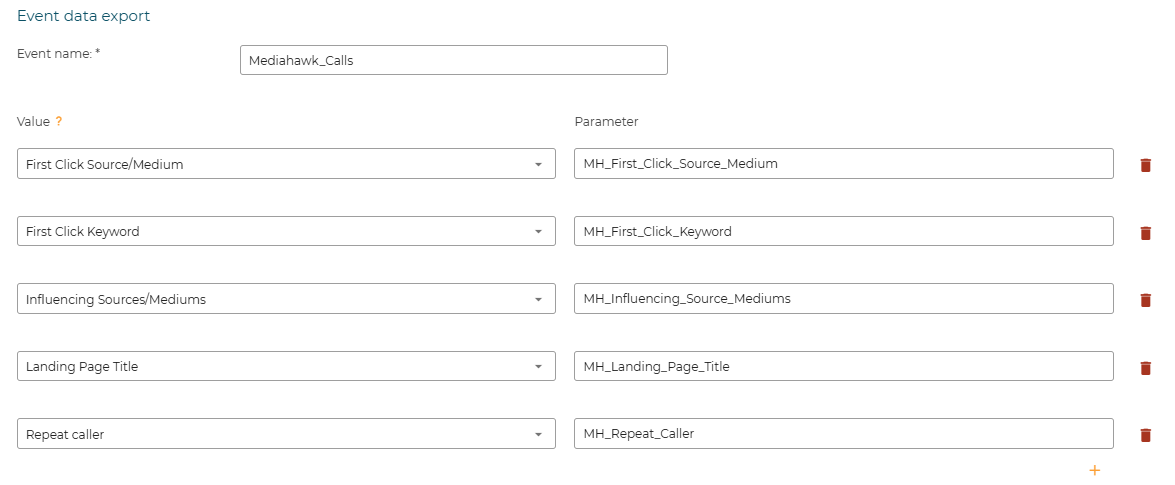 Parameter = The name of the data point that will show within your Analytics reporting (we usually recommend to have MH in the name so this is clear it is from Mediahawk - this also needs to follow the Google naming rules)