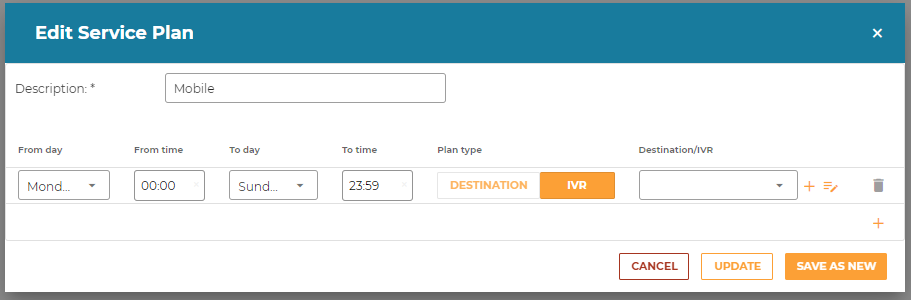 To set up a new IVR, here you can click the + icon to add a new IVR plan: