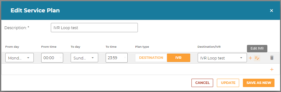 To edit an existing IVR, click the Pencil icon: edit IVR: