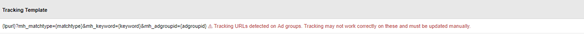 Please note: If you are using a Tracking Template on an AD-Group an error will appear within the tracking template on the Campaign level.
