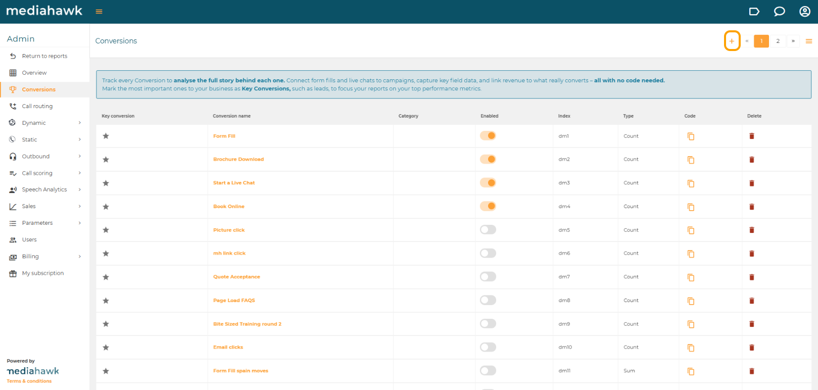 Create with code - This allows you to count the number of conversions - Please refer to Create Conversion with code to continue this way.