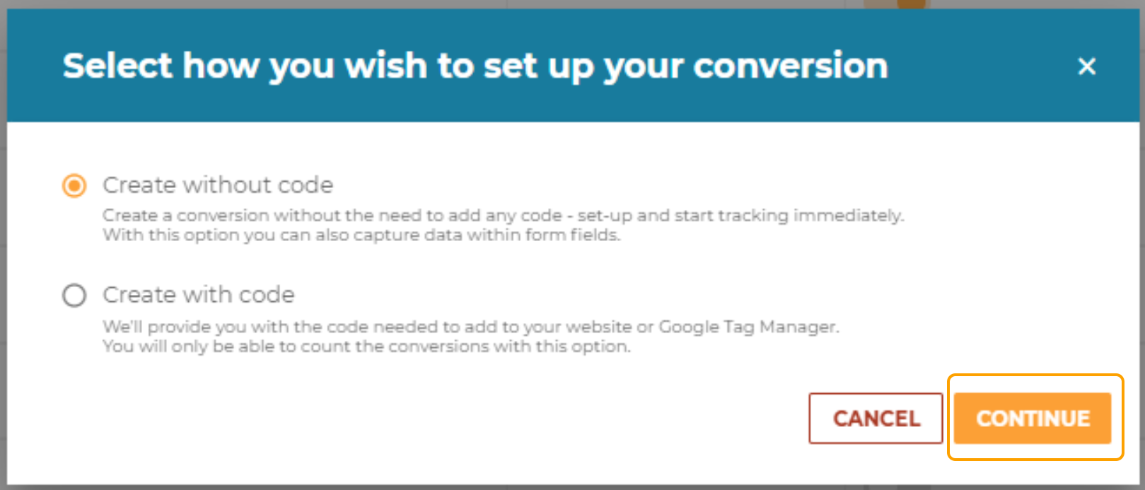 5. To create without code, depending on the type of conversion tracking, please follow one of the respective guides: