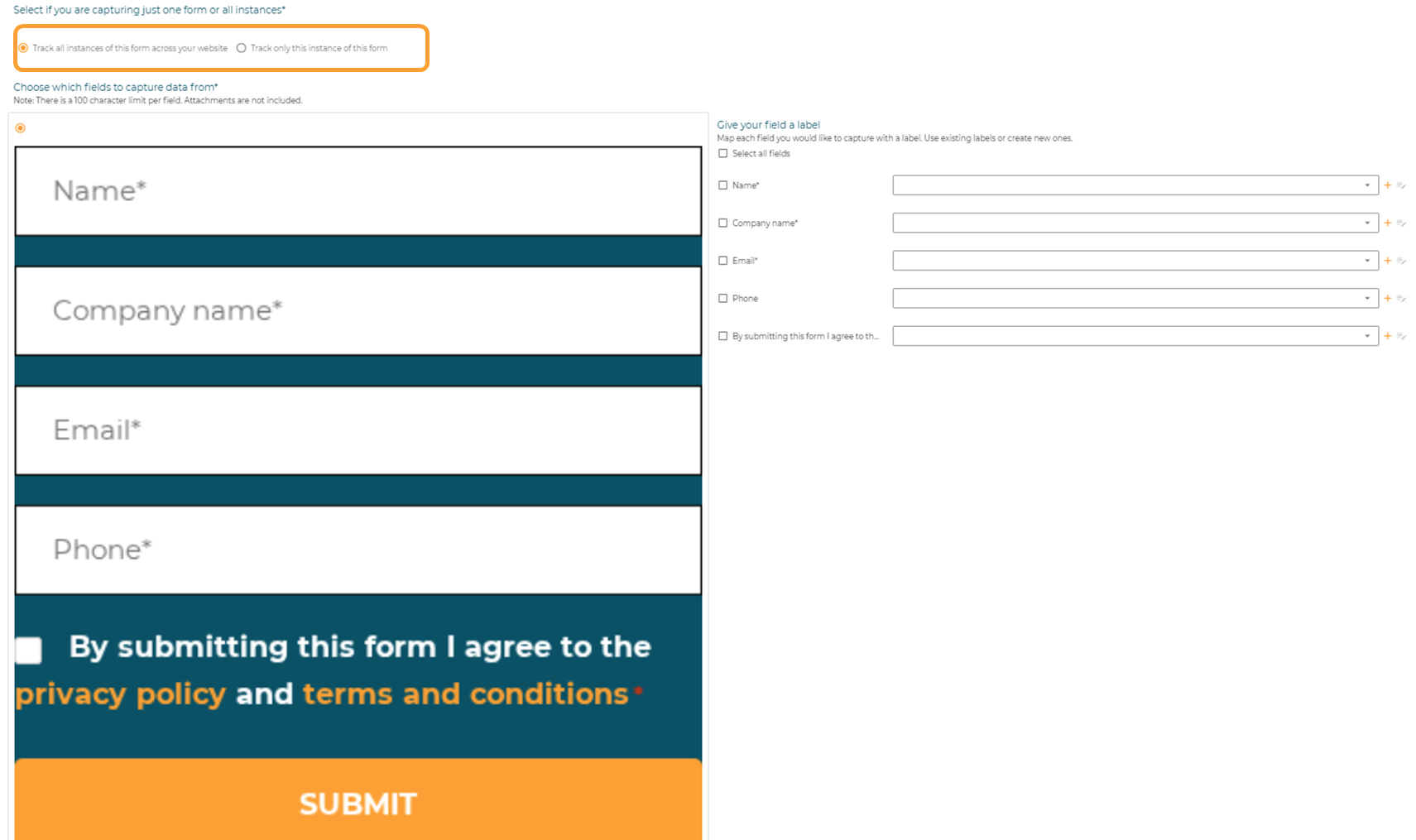 When that's completed, select whether you are tracking all instance of the form across your website or only the singular instance of the form.