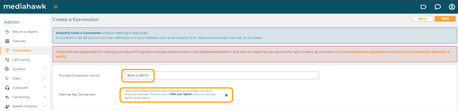 At this stage you can mark the conversion as a key conversion, which identifies those most important to your business. This is done by clicking on the star icon and will ensure that you can filter your reports to focus on your top performance metrics.