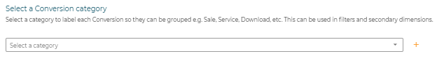Finally, you should create or select a conversion category. This assigns a label to each conversion so they can be grouped e.g. Sale, Service, etc. These can then be used in filters and secondary dimensions to gain more granularity in your reports.