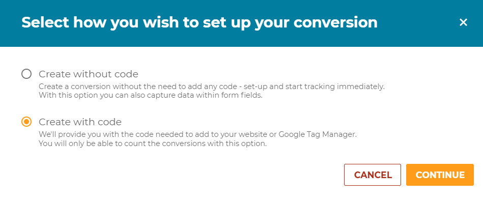 Once you've selected to create a conversion with code, you will navigate to the creation screen.